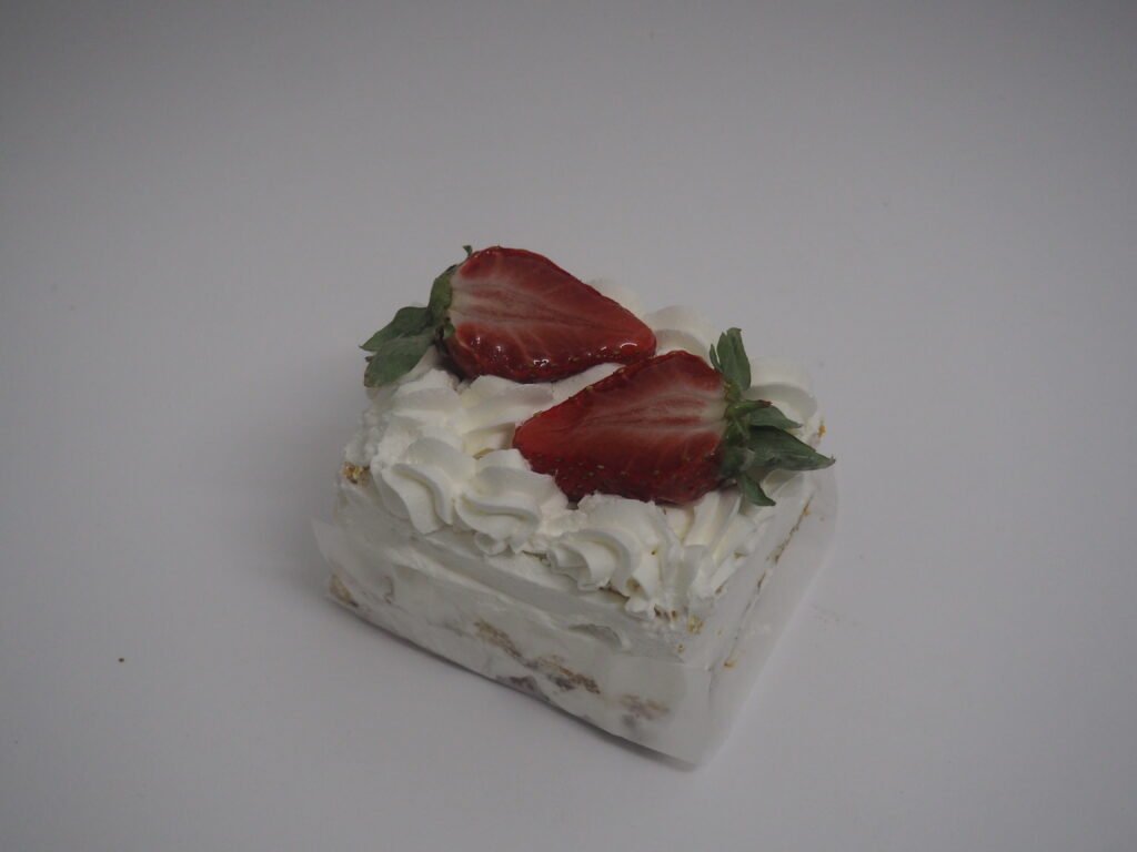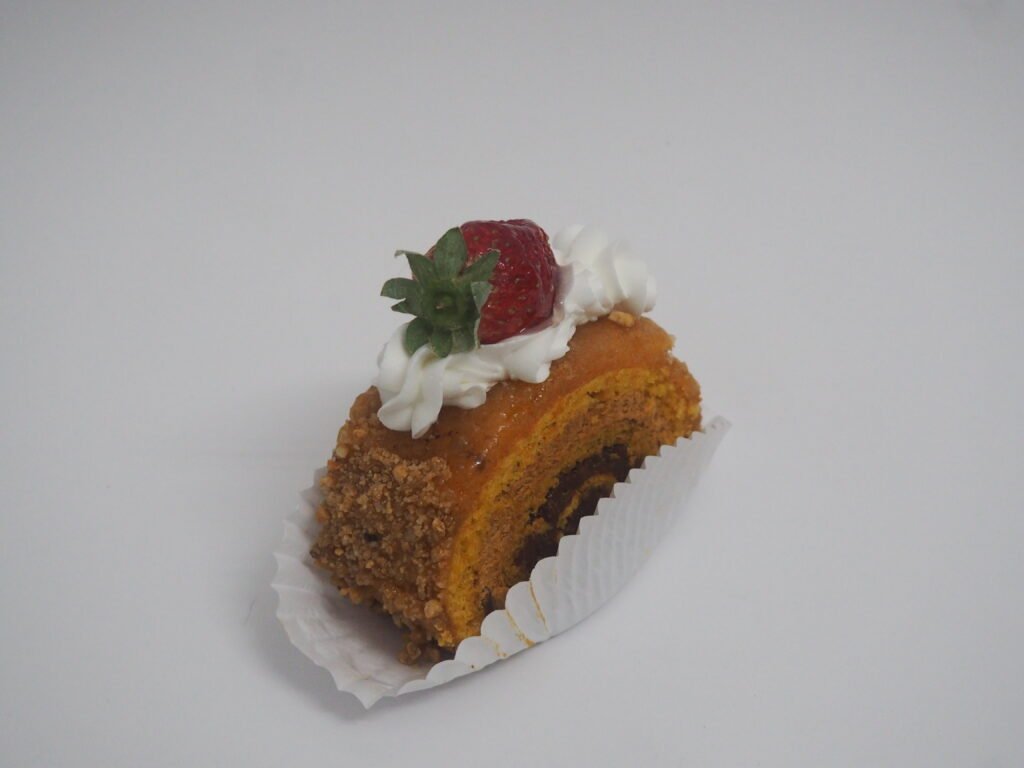 Bizcocho suave con nata montada y mermelada de fresa.