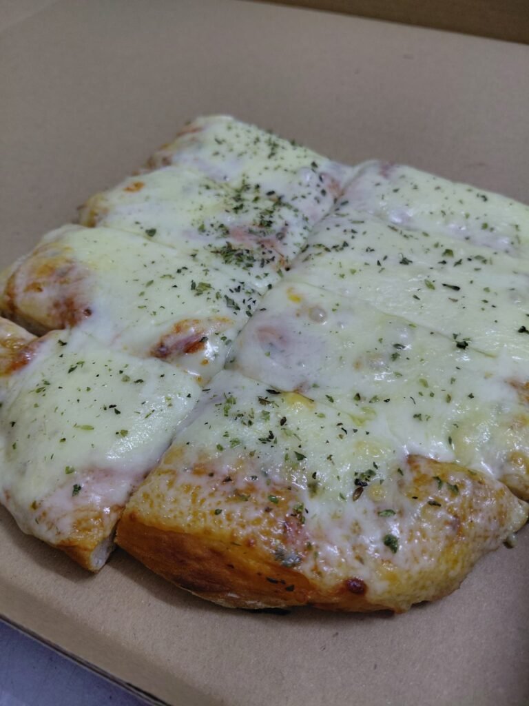 Tradicional pizza con muzzarella fundida sobre salsa de tomate. (Aprox 20x20cm).
